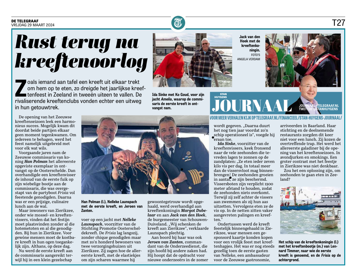 Angela Verdam van Scherp! Fotografie maakte deze fantastische foto’s van een geslaagde opening van het Oosterscheldekreeftseizoen 2024!
